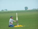 One of our newest members, Mark Grisco, launched some very nice looking rockets. Among them was a DynaStar Snarky which looked and flew great. He also had a Semroc Texas Firefly that is a 2 stage rocket that flew nearly out of sight on a B6-0, B6-6 motor combination.
