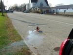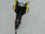 Bill Stearns launched his Aerotech Mustang on an Aerotech F12-5, which is a perfect motor for the Mustang with lots of smoke and slower lift-off than what you normally see with a Mustang. He also launched his Estes Big Daddy on an Estes E9-6 with some not so good results. The ejection charge went off but failed to eject the nose cone, so the rocket came in and actually hit a sidewalk. You can see the results in the launch gallery. The rocket actually hit a joint in the sidewalk and stuck there. I have never seen a rocket come in and end up like this one did. Bill also launched his Estes Blue Ninja a few times on Estes E9-4 motors and had some very long walks to recover the rocket.